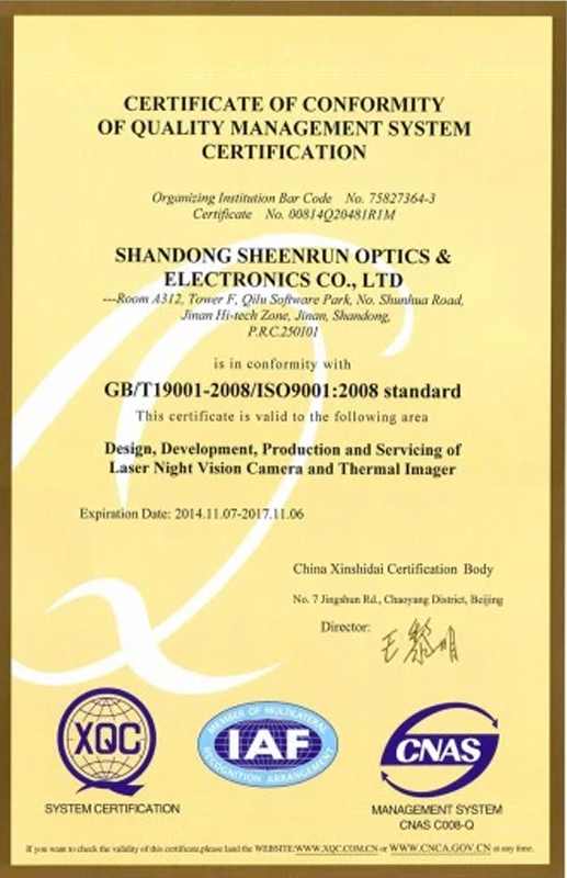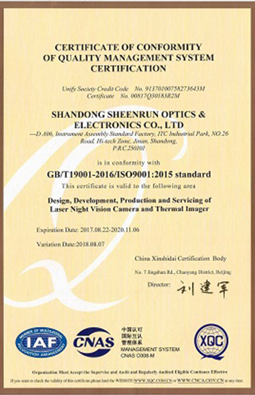 Компания Shandong Sheenrun Optics & Electronics Co., Ltd, основанная в 2004 году, является ведущим поставщиком оборудования ночного видения дальнего действия и тепловизионного оборудования. а также полагающаяся строительная компания Академической рабочей станции провинции Шаньдун и Исследовательского центра инженерных технологий ночного видения. Sheenrun придерживается независимых инноваций, разработала лазерную камеру ночного видения и неохлаждаемую инфракрасную тепловизионную камеру с непрерывным увеличением с независимыми правами на интеллектуальную собственность, ее технология лазерного ночного видения с синхронным увеличением и тепловизионная технология с непрерывным увеличением достигли стандартного уровня.