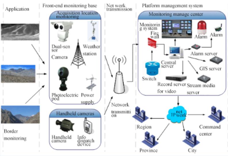 Система пограничного видеоконтроля разработана в соответствии с различными промышленными стандартами, относится к основным технологиям в сочетании с реальными потребностями пользователя. Кроме того, он использует иерархическую открытую архитектуру, многоуровневую, многосистемную, многосекторальную скоординированную платформу управления и контроля, разработанную в соответствии со стандартизированными интерфейсами и протоколами.